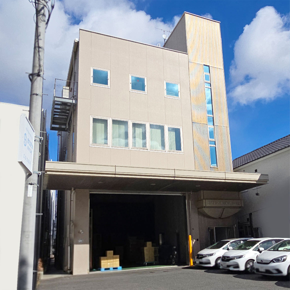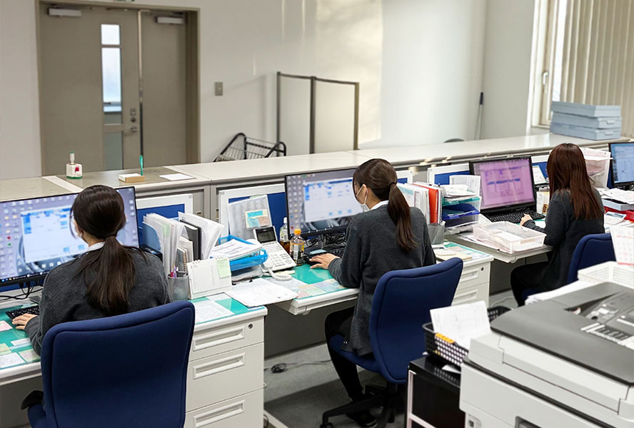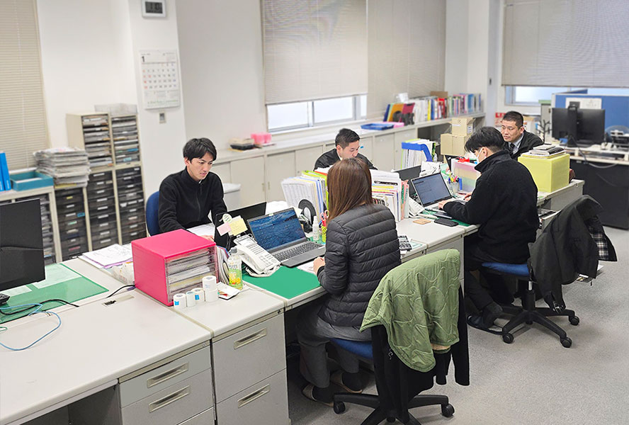 女性営業も活躍しています。太田川沿いの静かで落ち着いた環境です。