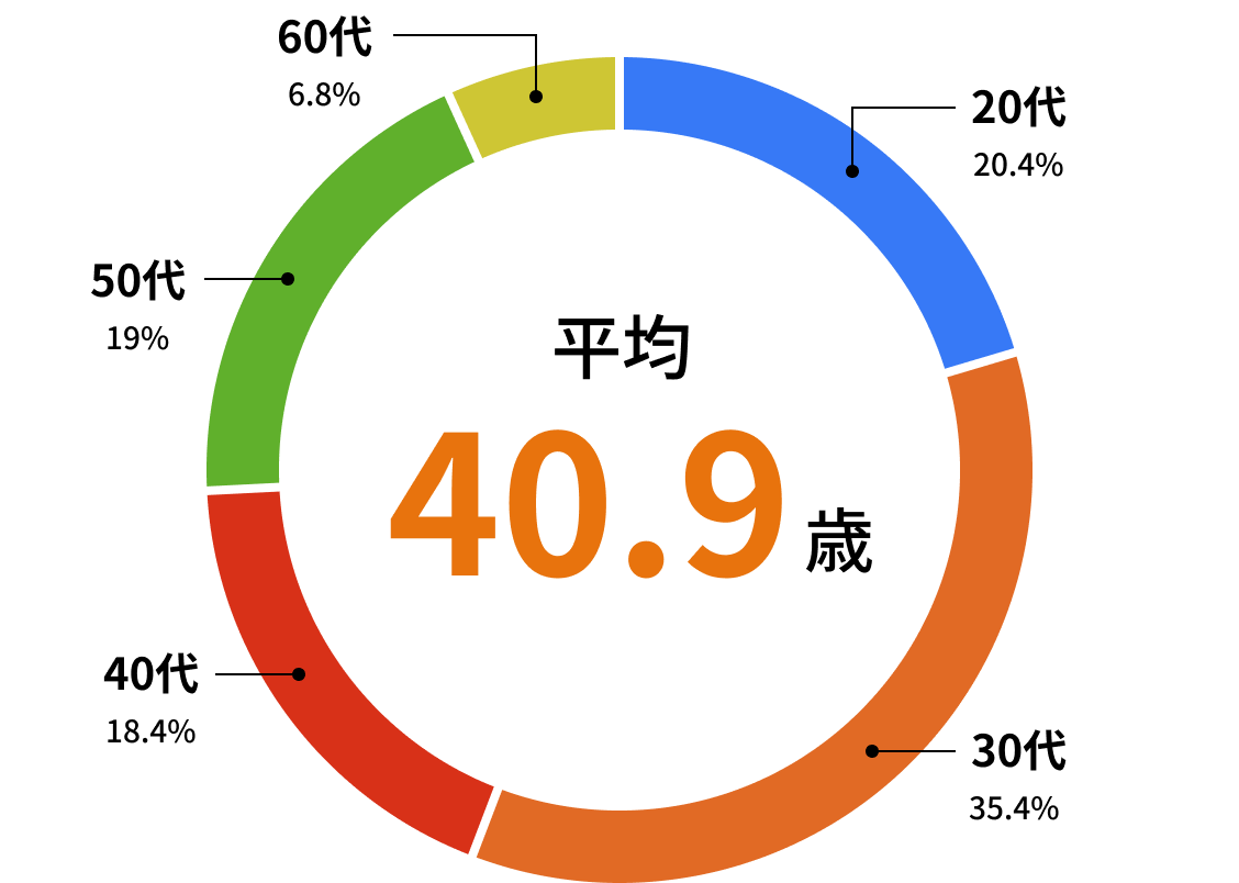 20代・30代が半数以上を占めています。若手も伸び伸び働ける職場です。