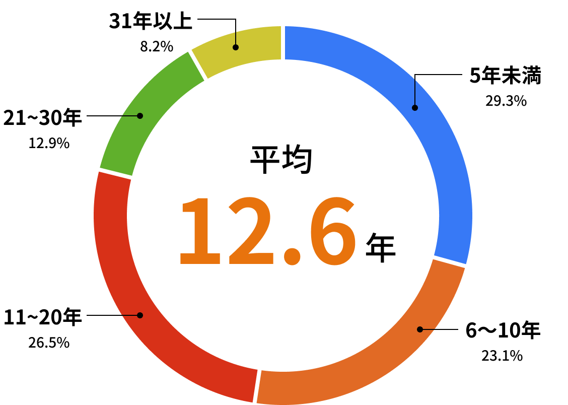 社員の約半数が10年以上勤務、安心して長く働ける職場環境が整っています。