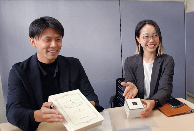 お客様の動きを読み、自分のアイデアを活かした提案を行います。製造・デザイン部門と協力してお客様のオリジナル商品を作ることもあります。